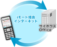 | サイボウズとの通信 | 直接、iモード経由インターネットで接続![]() ※パケットは弊社サーバーを通過いたします。 | サイボウズを利用可能なPCを介して接続![]() |