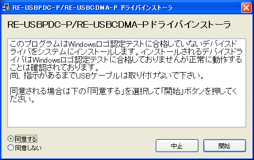 - 圧縮ファイルの解凍が行われ次の画面が表示されます。同意文をお読みになり同意する場合は「同意する」を選択後、「開始」をクリックしてください。
