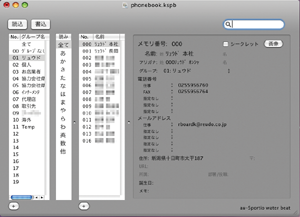 Macで電話帳データを編集し、携帯電話に書き込み。